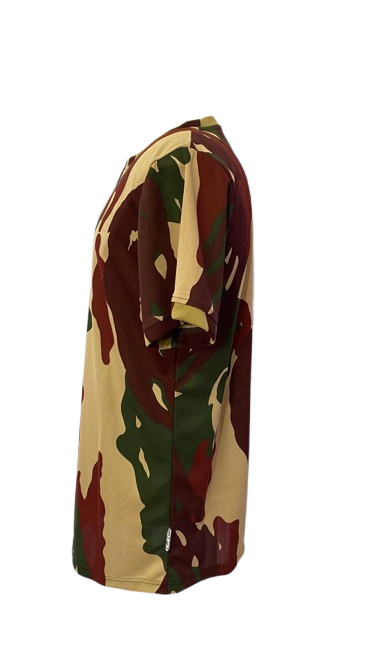 The main material of the Kopassus “Darah Mengalir” camouflage T-shirt is Dri-Fit. The fabric uses a single knit construction. The coloring process uses reactive dyes, which ensure longer-lasting color stability.